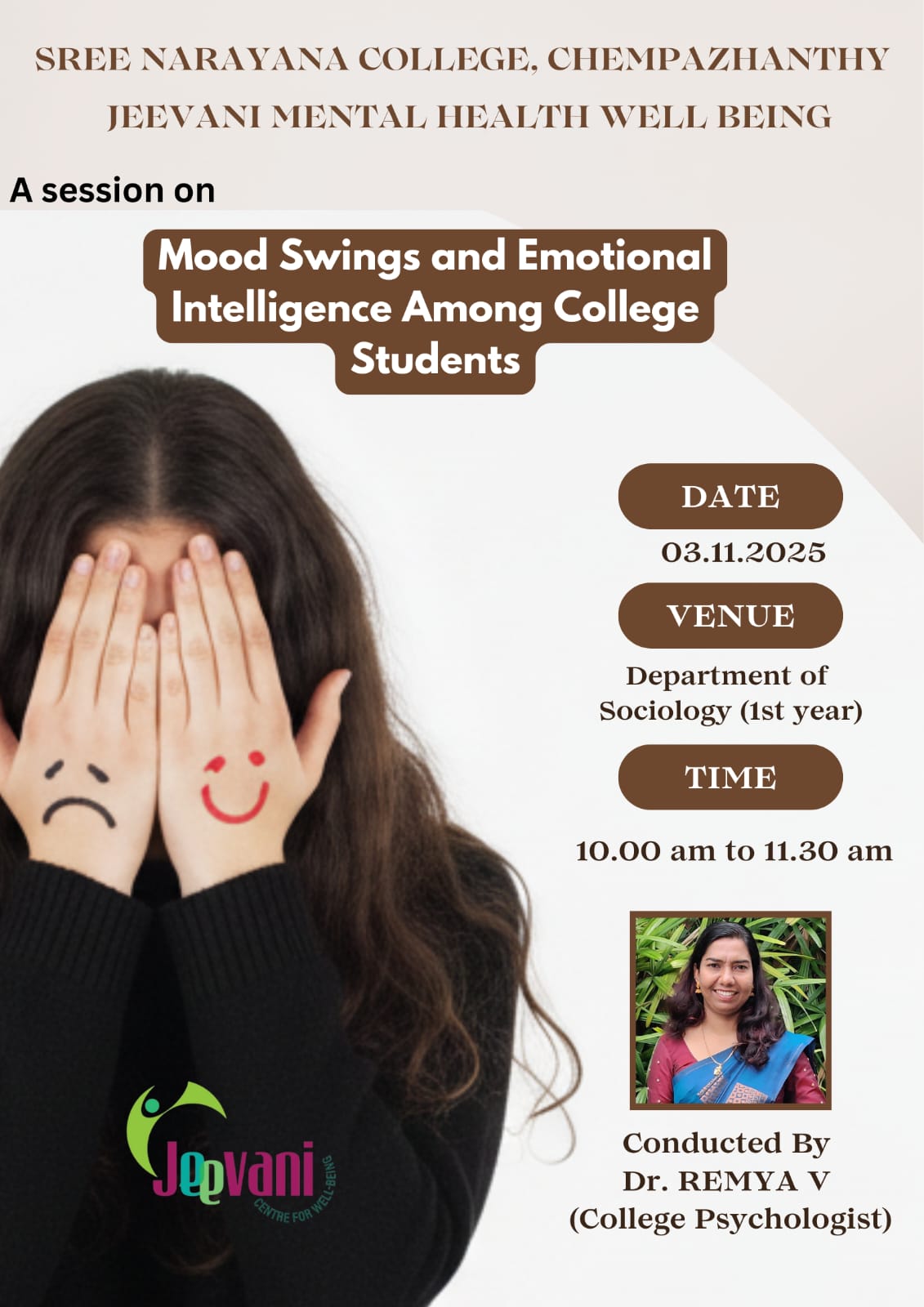 Dr. Remya V, our College Psychologist, is available at the Counselling Centre during working hours on all working days to offer professional guidance and support to students in need.