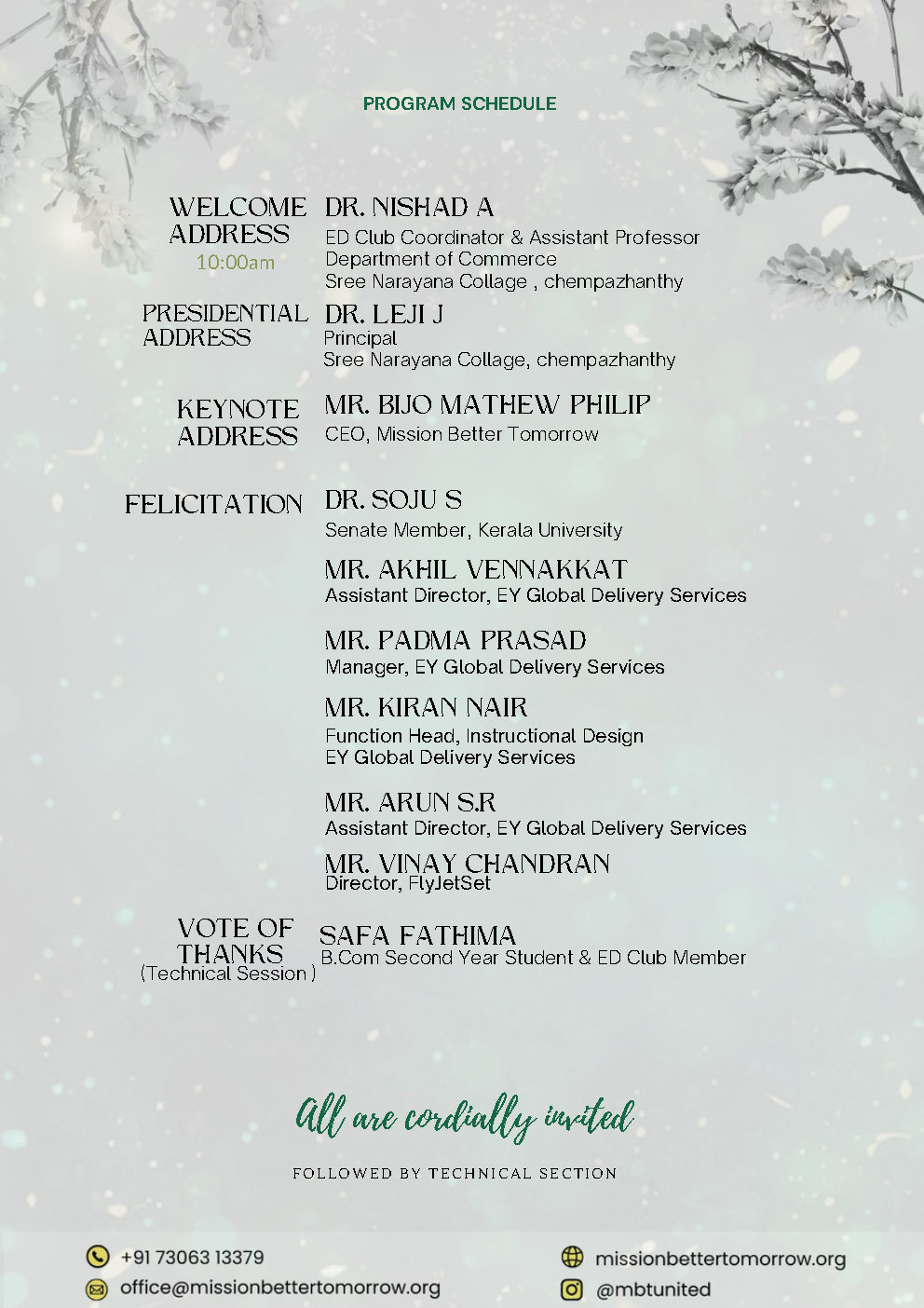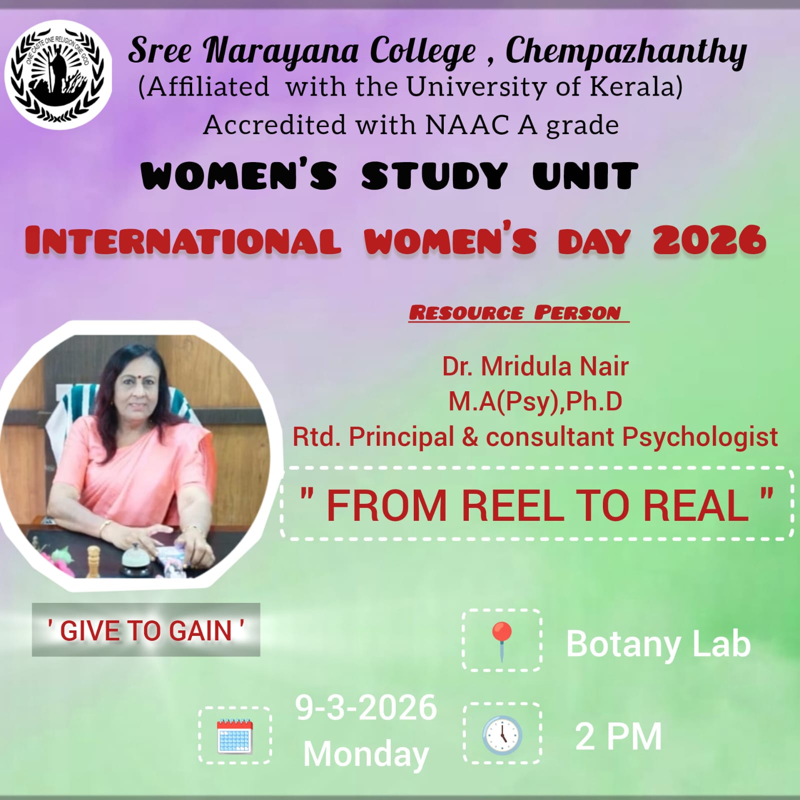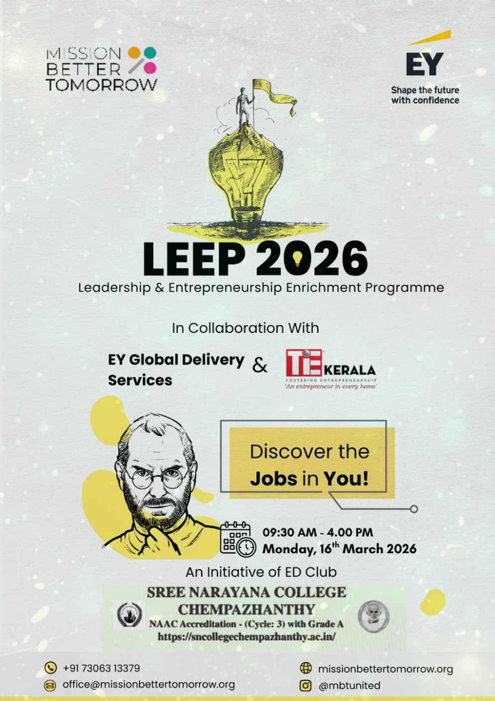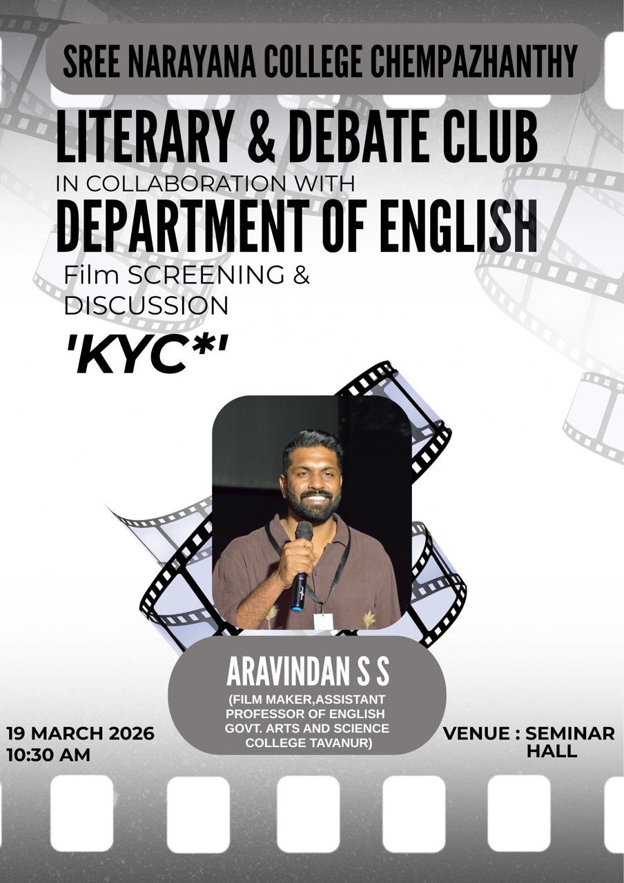 The Media Club and the Theatre & Film Club of Sree Narayana College, Chempazhanthy, are thrilled to invite you to an exclusive interactive session designed to sharpen your lens and ignite your creativity. Whether you are a hobbyist with a smartphone or an aspiring pro with a DSLR, this is your chance to pick valuable tips in the field of photography. Prof.(Dr.) Manu Remakant, Renowned Author & Wildlife Photographer will share his experiences and tips with the students in the program that will be held in the Seminar Hall at 11am on 5-02-2026, Thursday.