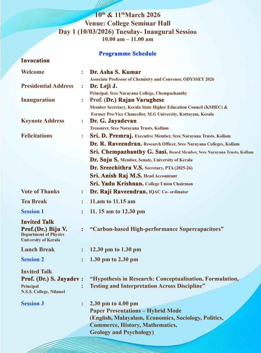 Organised by RESEARCH DEVELOPMENT CELL & IQAC in collaboration with KERALA STATE HIGHER EDUCATION COUNCIL (KSHEC)