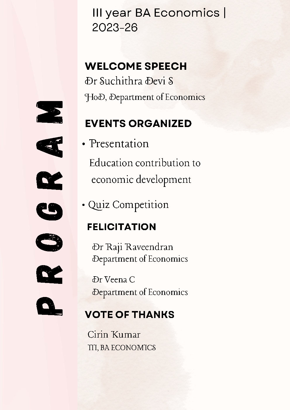 The programme concluded at 3:30 p.m. with an active participation from the students. During the interactive session, Mithun Prasad (III B.A. Economics) and Abin (B.A. Economics) raised relevant questions, while Mohit (II B.A. Economics) shared his positive feedback on the programme. The students actively participated, making the session lively and productive.