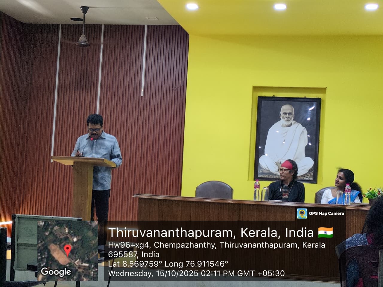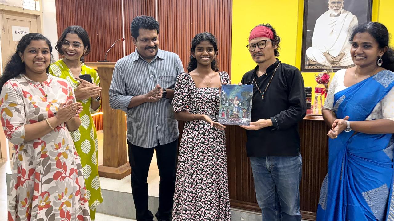 Mansi Binoj, I MA English, introduced the speaker, and Reshma Nath V, III BA English, delivered the felicitation. A special moment of the event was the presentation of a canvas artwork by Sabnja, III BA English, to the guest as a token of appreciation.