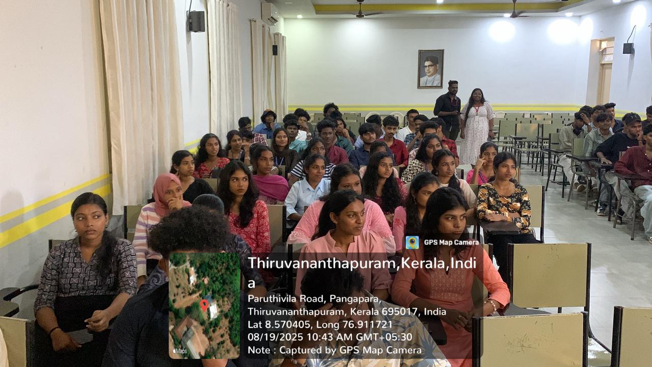 The Department of Economics conducted an awarness program for degree students on 19/08/2025, 10 am at the College Seminar hall. Dr Suchithra devi, Hod, Department of Economics, delivered the welcome address. The resources person was Mrs Sheeja Dharan, Principal, Govt higher secondary school, Kazhakootam, who is also the coordinator of Mahas, an organization for social service. The topic was "Life is a journey, Let's make life happy". Ms Krishna gave a wonderful and inspiring motivational talk on the techniques to make life happier. She highlighted the fact that true happiness does not come from money and power, it emerges rather from healthy relationships.The resource person motivated all students to lead a healthy life through a balanced diet, proper exercises and meditation.She also quoted the real world examples of eminent personalities who struggled through miseries and hardships and finally succeeded in life. The session concluded with an interactive and sharing feed back of the students.Dr Raji Raveendran, felicitated the event. Mrs Veena C delivered the vote of thanks and the session concluded by 1 pm.